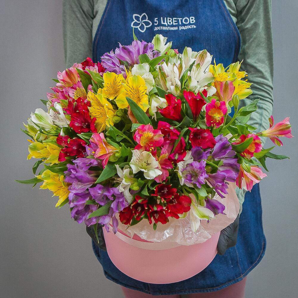 Букет из 19 альстромерий микс в шляпной коробке