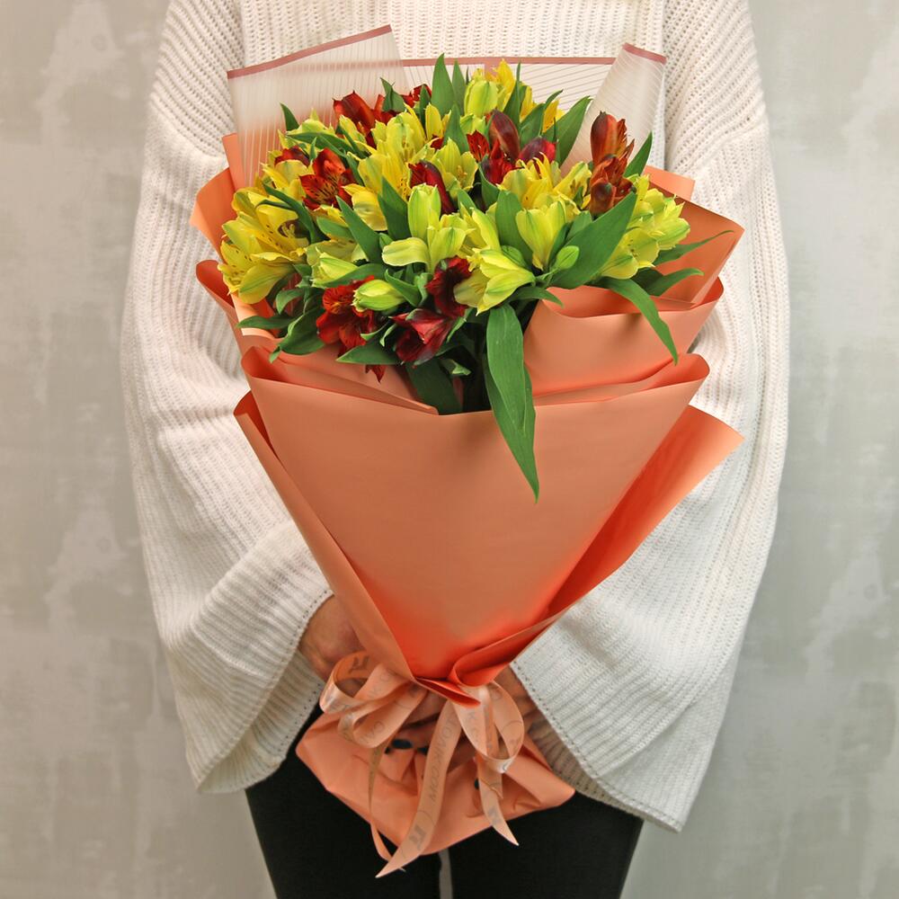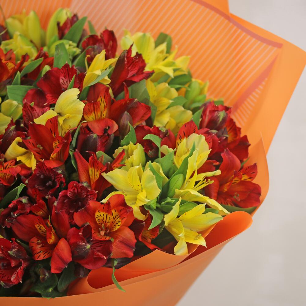 Букет из 19 альстромерий яркий микс в упаковке