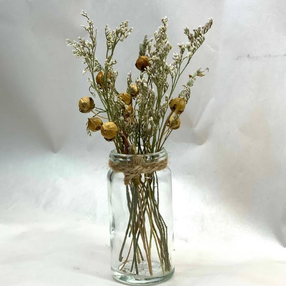 Букетик сухоцветов в красивой вазочке станет прекрасным дополнением в интерьере или украсит ваше рабочее пространство Не требует никакого ухода,будет долго радовать вас Пакуем в крафт- пакет.