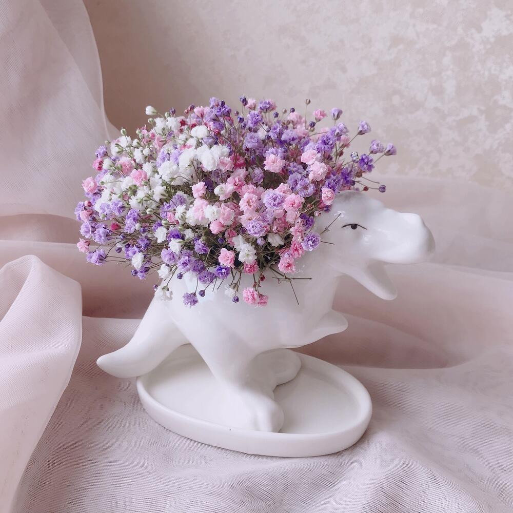 Радужная гипсофила в кашпо из керамики «Лисичка»