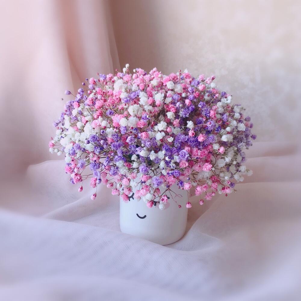 Керамическое кашпо – 1 шт.Флористическая губка – 1 шт.радужная гипсофила – 3 шт.