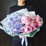 Гортензии, Кустовые розы, Пионовидные розы, Розы