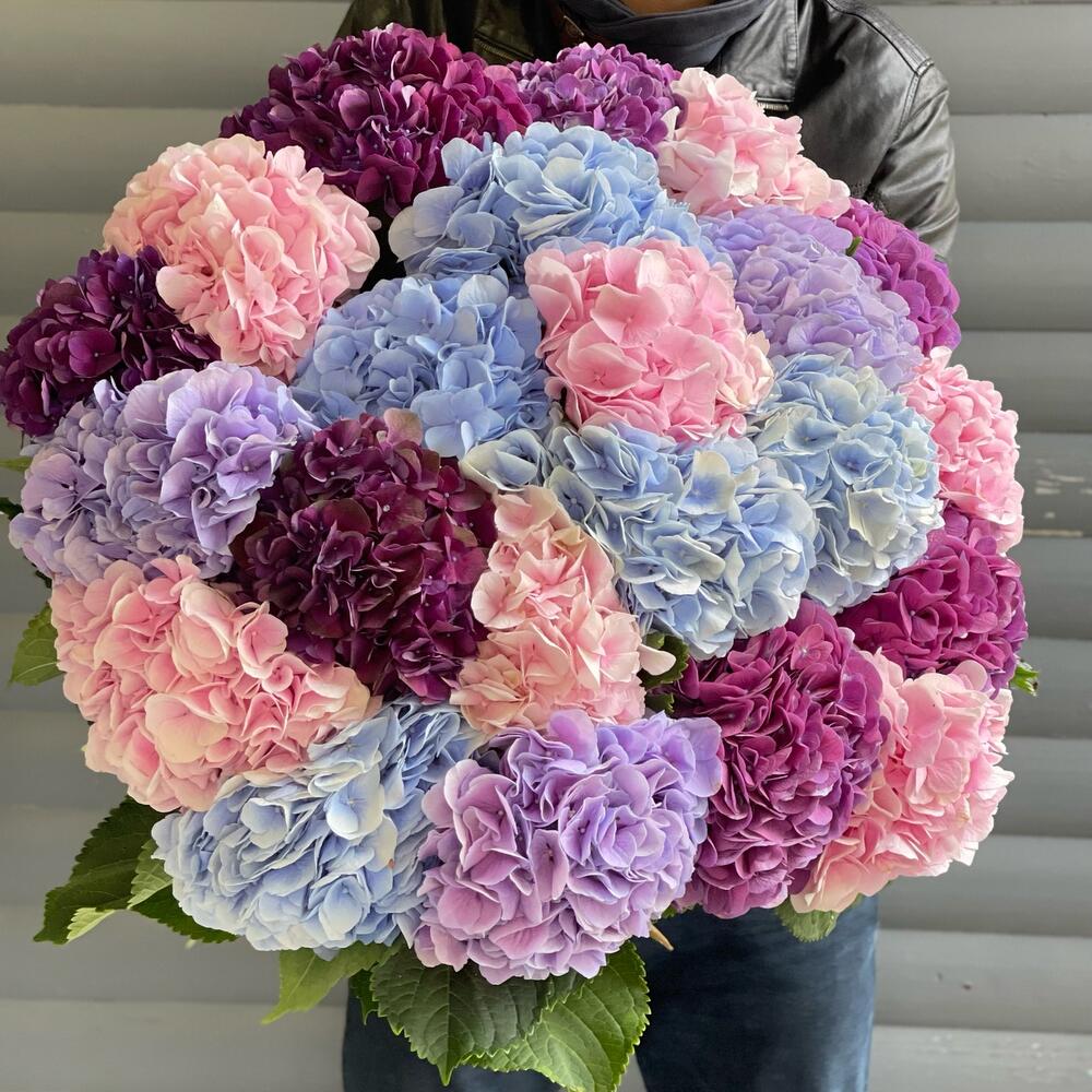 Гортензии, Кустовые розы, Пионовидные розы, Розы