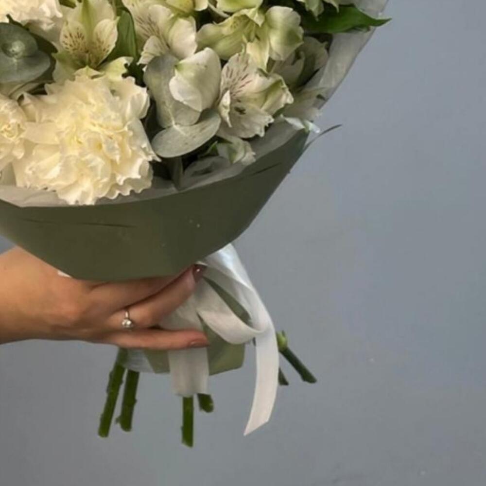 Гвоздика – 5 шт.Альстромерия – 7 шт.Упаковка дизайнерская – 1 шт.