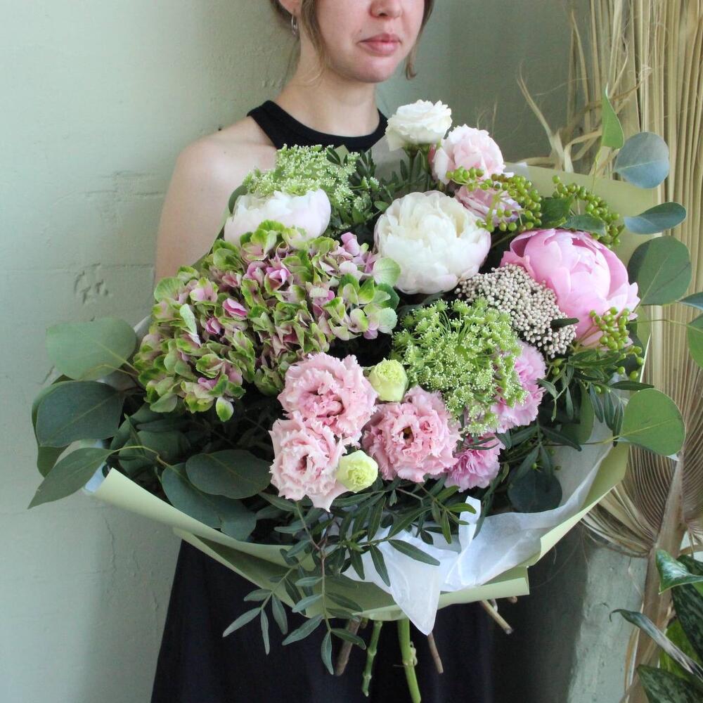 Категории: Гвоздики, Гортензии, Лизиантусы, Пионы