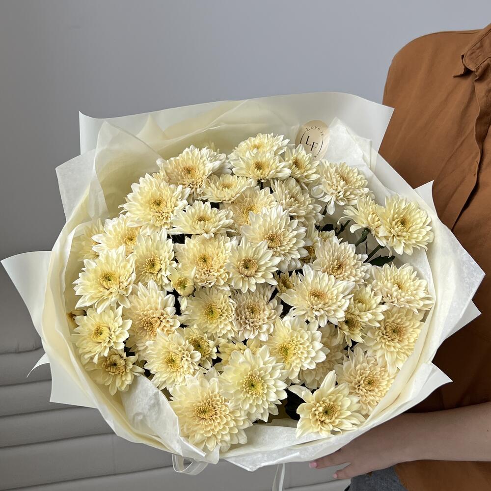 Пленка матовая – 1 шт.тишью хрустящая – 1 шт.хризантем кустовая sorbet с легким медовым ароматом – 9 шт.открыточка брендированная в подарок – 1 шт.