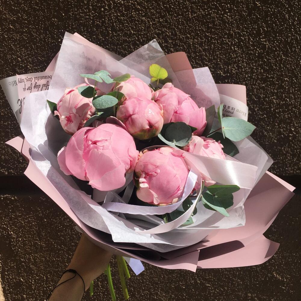 7 пионов Сара Бернар с эвкалиптом