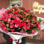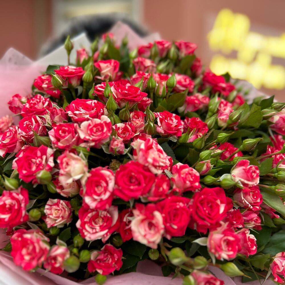 Кустовая роза – 15 шт. Матовая пленка – 1 шт. Тишью – 1 шт.