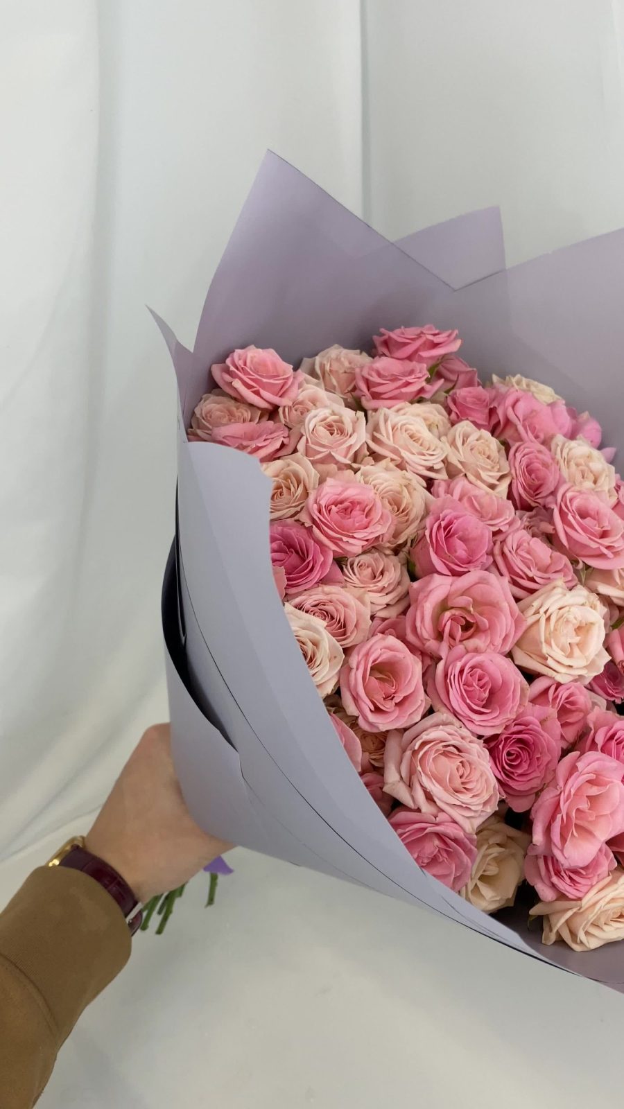 кустовая роза микс – 31 шт.Упаковка – 3 шт.Атласная лента – 1 шт.
