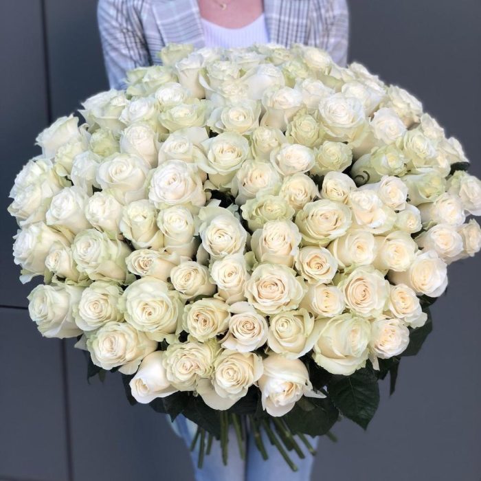 Метки: 101 роза, 14 февраля, Белые розы, от 5000 руб, Роза 60 см