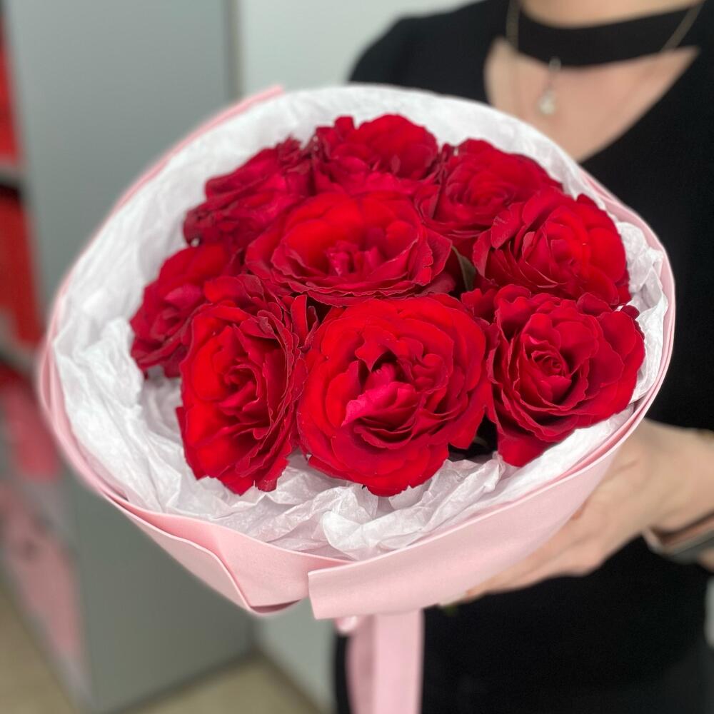 Букет из 9 красных роз в стильной упаковке