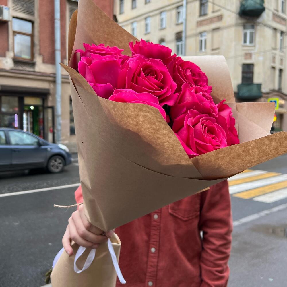 роза ароматная Pink Floyd – 9 шт.Упаковка крафт – 2 шт.Лента атласная – 1 шт.