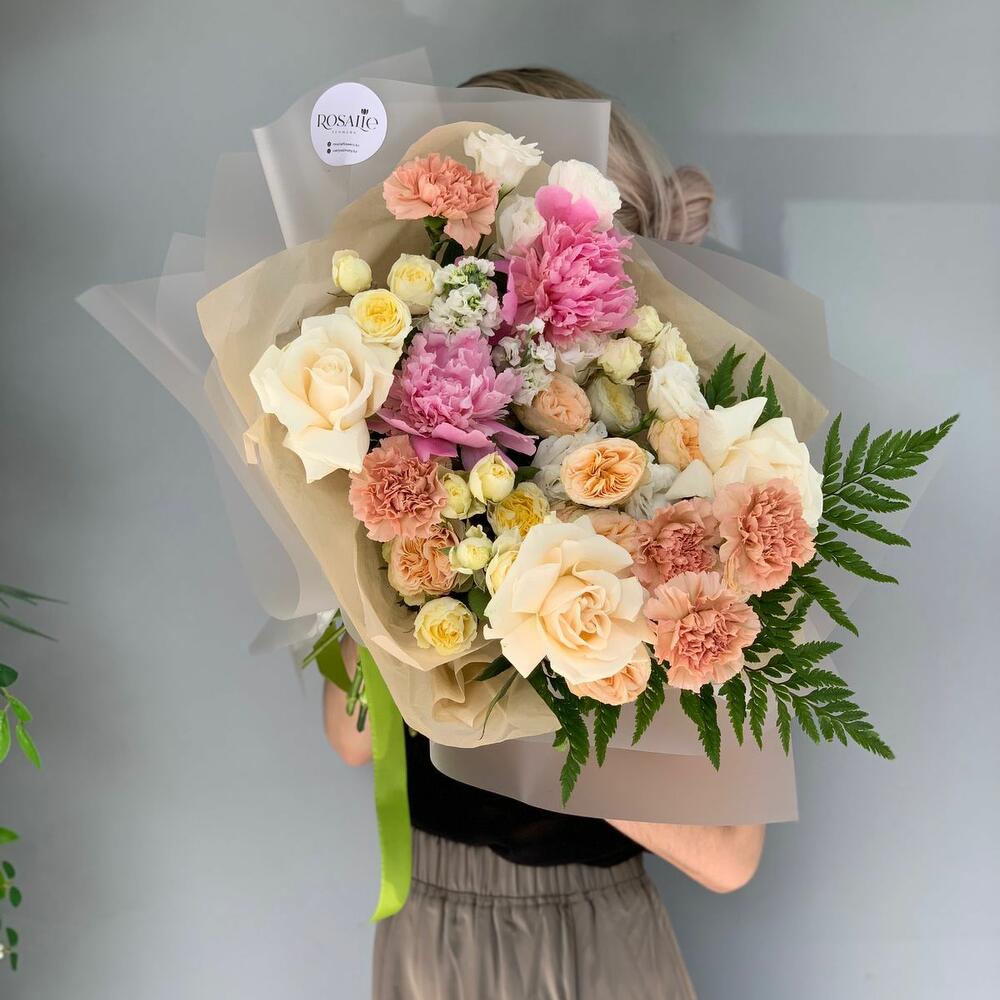 Гвоздики, Кустовые розы, Пионовидные розы, Розы