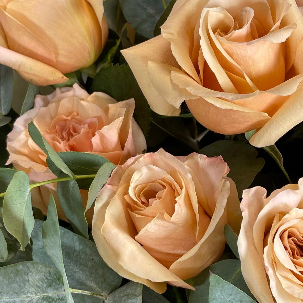 Букет с персиковыми розами Искушение XL
