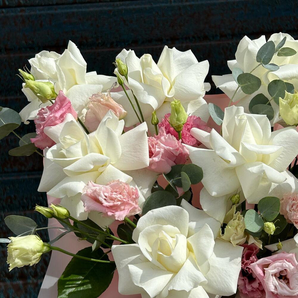Гвоздики, Кустовые розы, Лизиантусы, Пионовидные розы, Розы