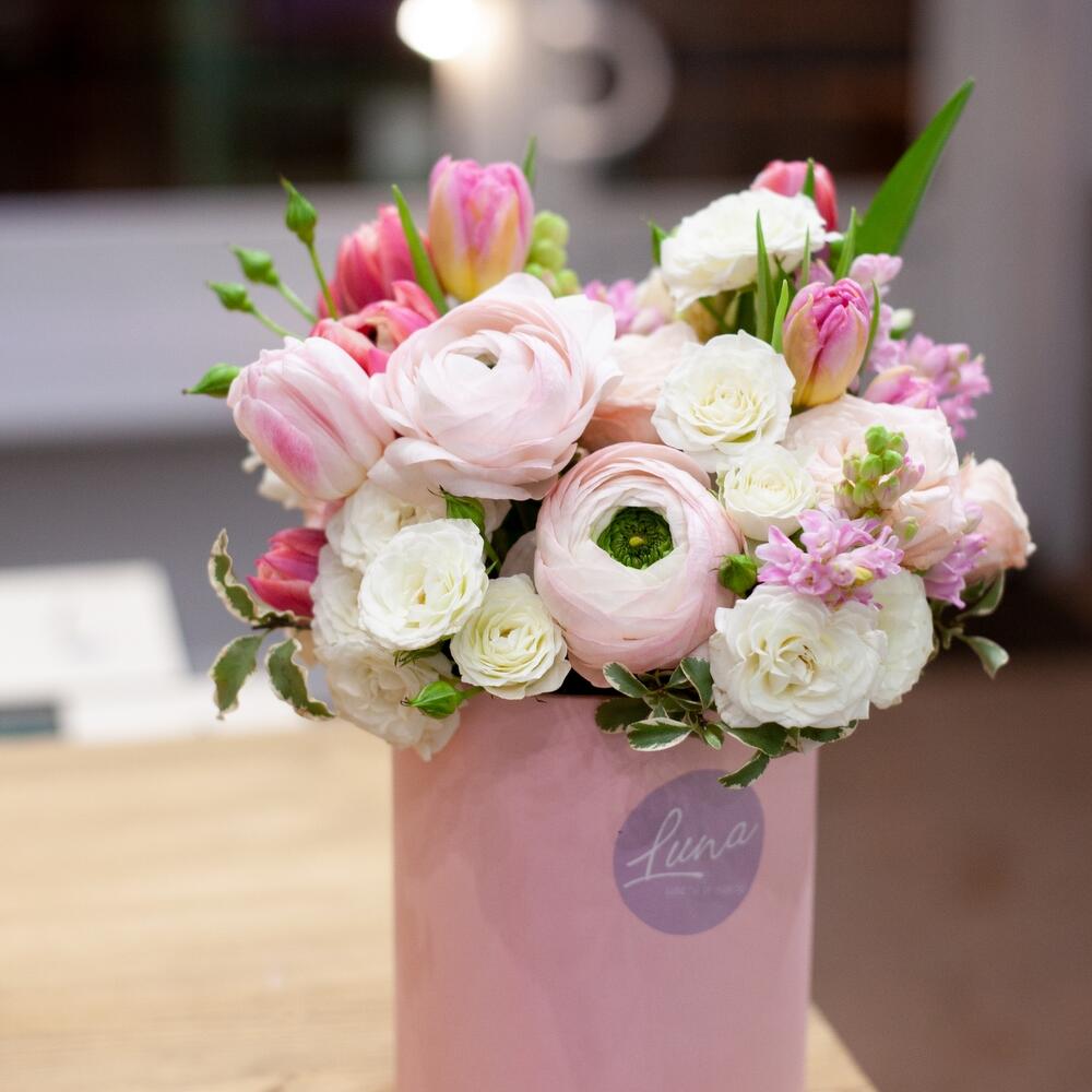 Цветы в шляпной коробке “Зефир”