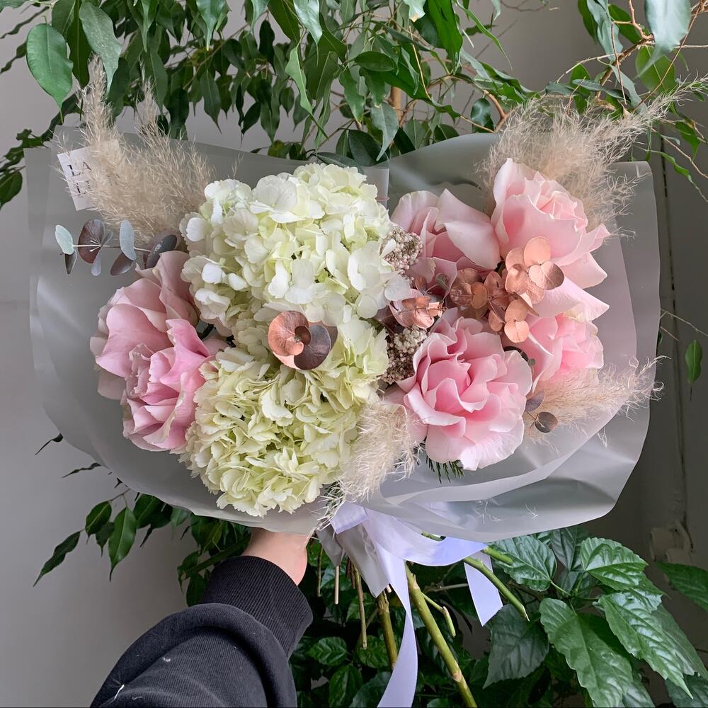 “Эвкалиптическая роскошь” гортензия и пионовидная кустовая роза