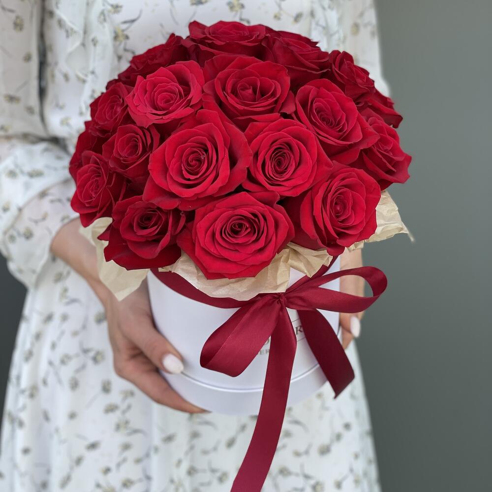 Коробка шляпная из 25 красных роз