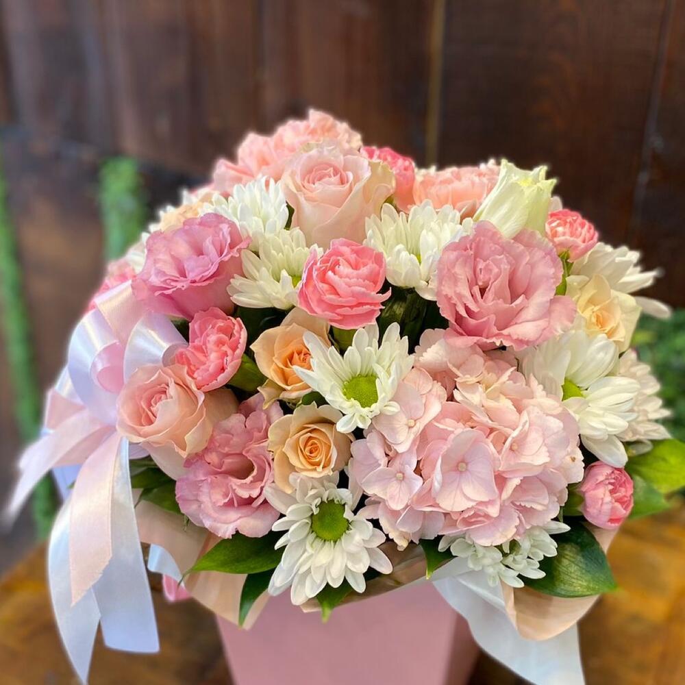 Категорий: Гвоздики, Гортензии, Кустовые розы, Лизиантусы, Розы, Хризантемы