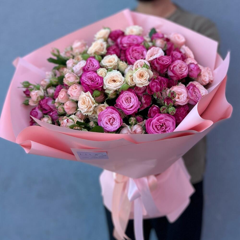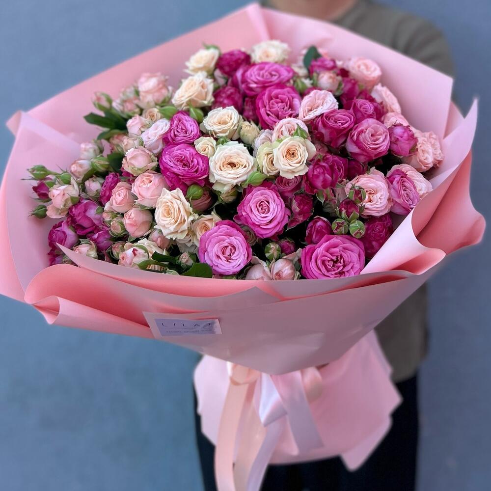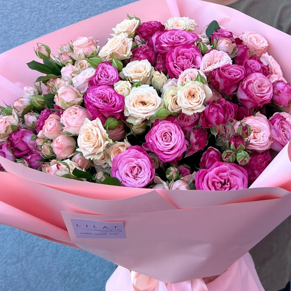 Альстромерии, Кустовые розы, Лизиантусы, Пионовидные розы, Розы, Ромашки