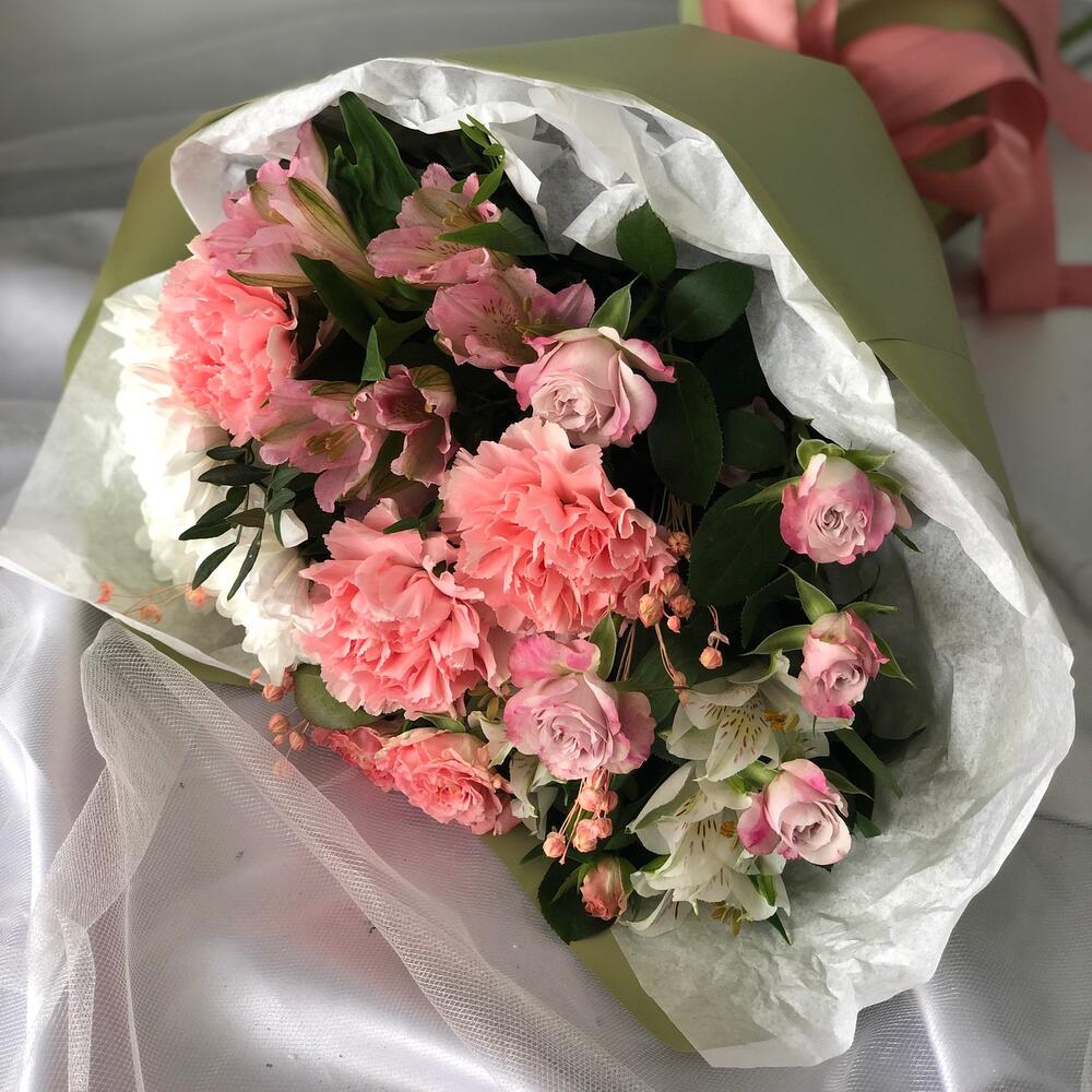 Категорий: Альстромерии, Гвоздики, Кустовые розы, Розы, Сухоцвет, Хризантемы