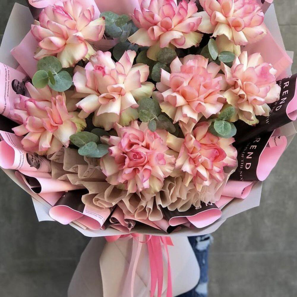 Гвоздики, Кустовые розы, Лизиантусы, Пионовидные розы, Розы