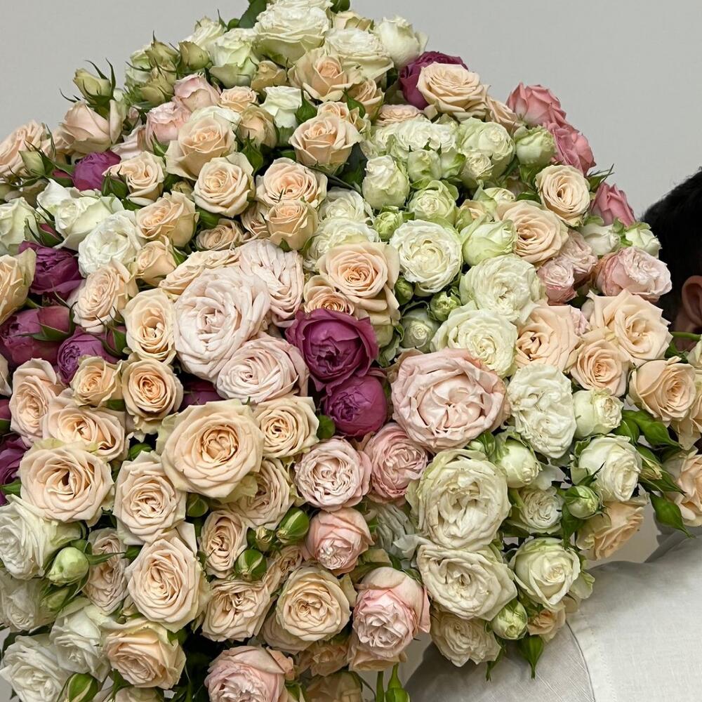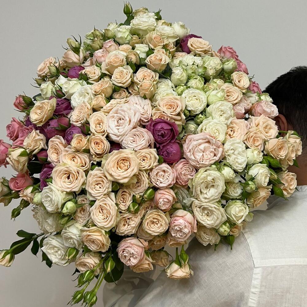 Альстромерии, Кустовые розы, Лизиантусы, Пионовидные розы, Розы, Ромашки