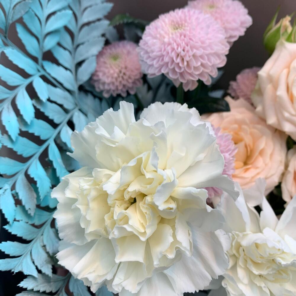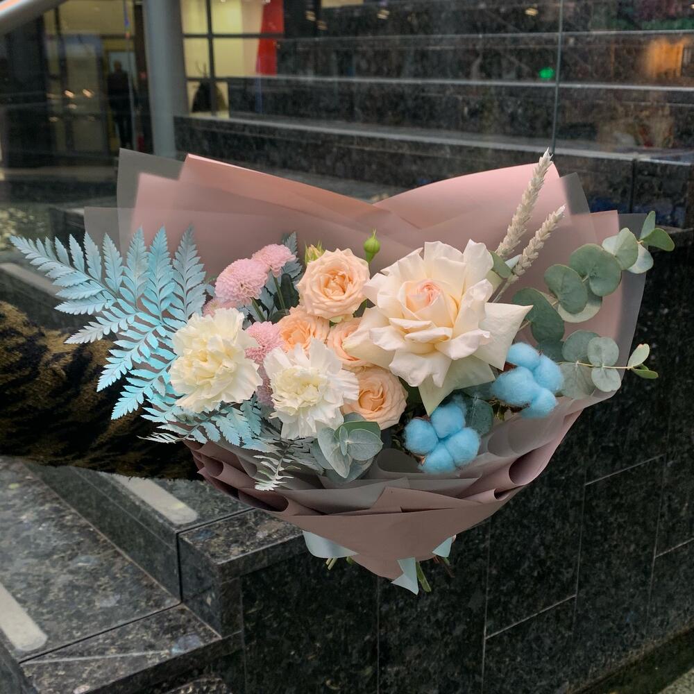 Гвоздики, Кустовые розы, Пионовидные розы, Розы
