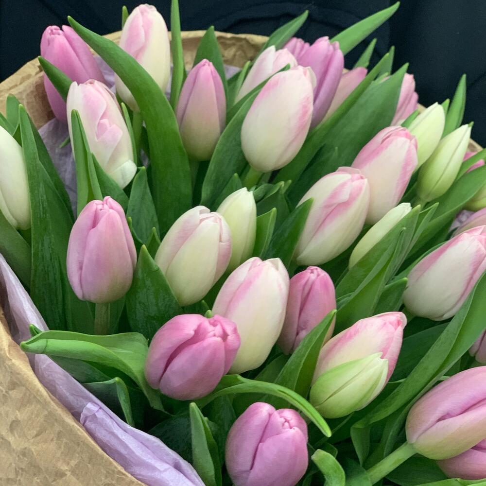 25 пионовидных сиреневых тюльпанов дабл прайс. Букет 200 Kimbirly Flowers